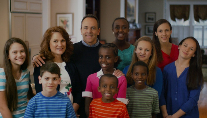他带着妻子格伦娜和九个孩子走遍了肯塔基州。那画面温馨而美好,一位身着定制西装的富商,一位保守的基督教家长,一个笑容满面的跨种族家庭,仿佛是圣经教义的具象化。